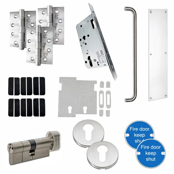 Complete Fire Door Latch Pack: Includes all essential components for a certified fire door setup.